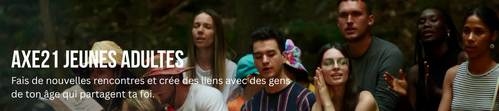 C'est la communauté de jeunes adultes d'Axe21 qui se rassemble et crée des liens ensemble. Les rassemblement se veulent des journées ou soirées décontractés et fun, qui te donnent une opportunité de rencontrer et connecter avec des gens de ton âge et qui partage la même foi que toi. Les rassemblements sont un lieu de connexion, d'encouragement et de plaisir aussi ! Nos rassemblements peuvent prendre différentes formes : ateliers, conférences avec invités, activités, soirée avec message, randonnées et autres !